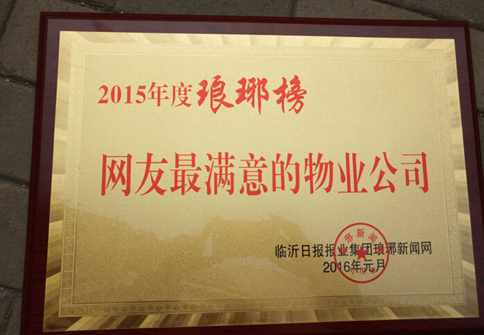 1月15日在臨沂IFC舉行的2015年度瑯琊榜(第一屆)頒獎典禮中,山東奧晟物業服務有限公司榮獲“2015年度網友最滿意的物業公司”。本屆頒獎典禮由臨沂日報報業集團瑯琊新聞網主辦,奧晟物業綜合辦公室主任王靜受邀出席頒獎典禮。