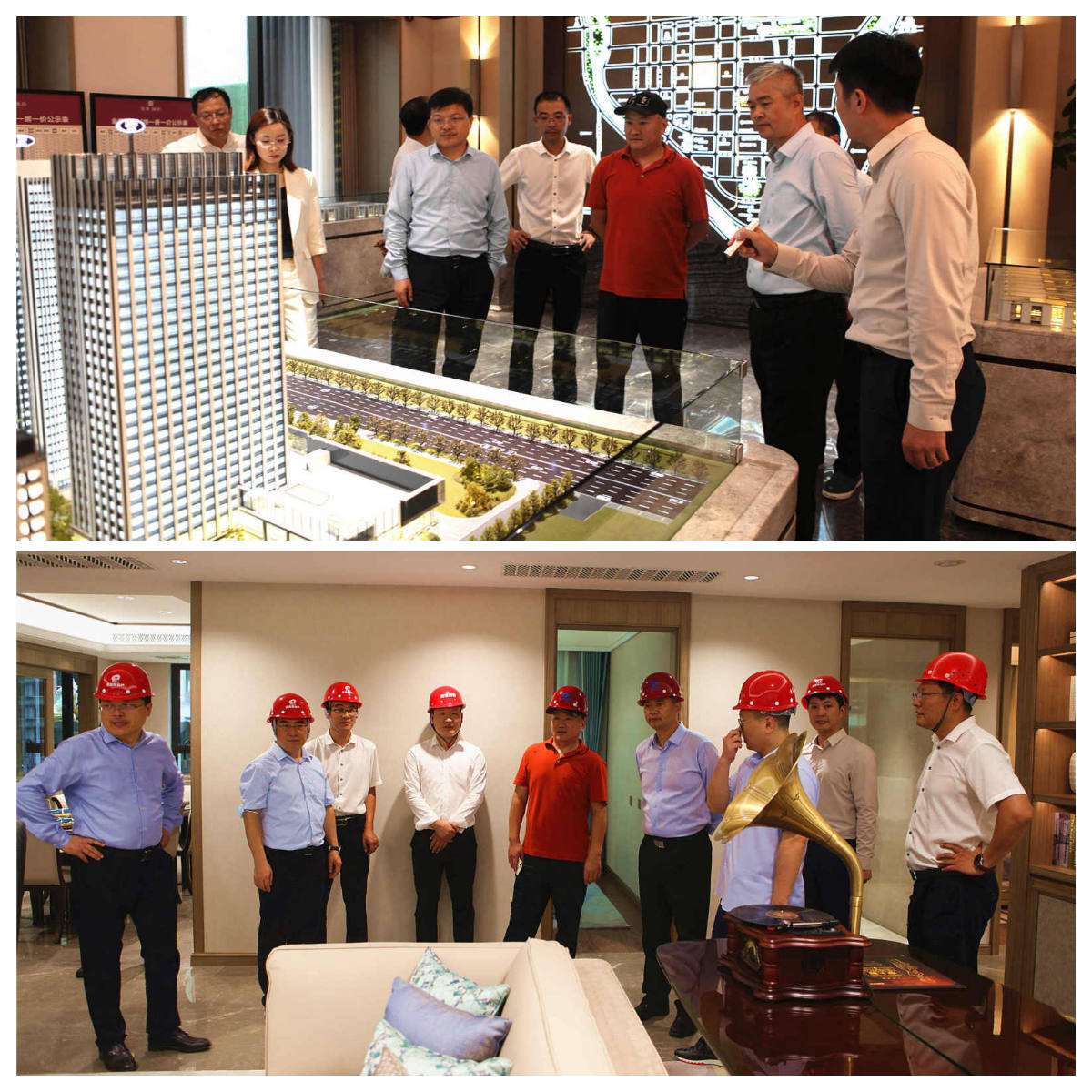隨后,俞董一行對本地品質樓盤項目進行了考察,如融創未來壹號、奧正雅園等??疾爝^程中,領導一行重點關注了項目的目標客群、銷售情況,對于一些先進的建筑做法和產品開發理念,進行了學習和交流。